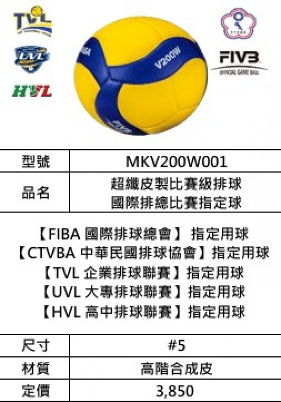Mikasa排球(比賽用.超纖皮.國際排總比賽指定球.V200W)定價3850